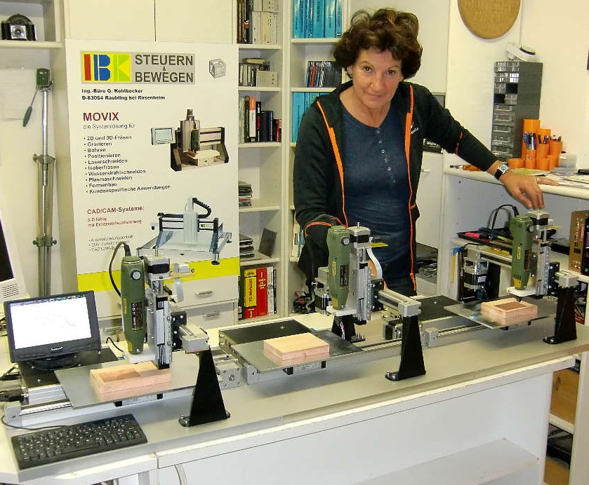 NEU - Die neu konstrierten A4/A5-Fräsen unterscheiden sich durch das Format, DIN-A4/DIN-A5 und haben Präzisionsspindel statt Zahnriemen NEU - Preis der A5-Fräse wie A4. Sonderfertigung-und Zubehör wie A4. Arbeitsbereich A4 < 300x 210 mm, A5 < 210 x 160 mm Für Modellbauer und Formfräser: Die MOVIX-Maschinen können auf Anfrage optional auch mit Mach-3 betrieben werden! |