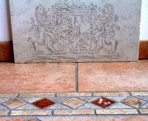 | Bayrisches Wappen, in Marmor graviert | Unser Arbeitspferd (PT-360) mit neuer Z-Achse beim 3-D Fräsen |