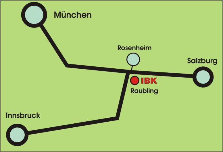 | Raubling liegt 6 km südlich von Rosenheim, im Dreieck zwischen München, Salzburg und Innsbruck | ||||